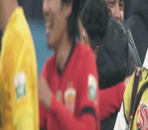 比赛结束之后,武磊走上了球场,与队友们一起庆祝。然而,情绪激动的武磊却在拥抱吾米提江之后哭了起来。在与吕文君庆祝之后,武磊再次双手擦泪。