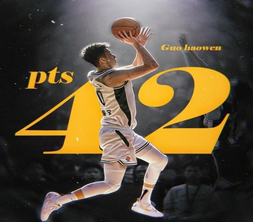 首发出战37分钟,郭昊文27投14中爆砍42分6篮板8助攻,在 三分线外12投6中,罚球线上12罚8中,破坏力极强。